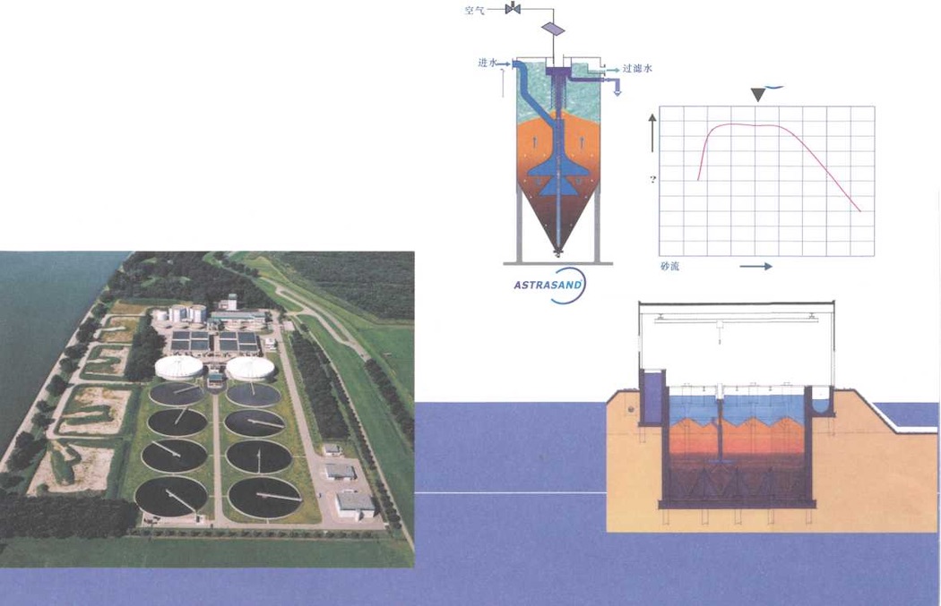 利用水体中丰富的污染物作为食物,微生物可以在滤砂的表面生长和拓殖,形 成生物挂膜,这样ASTRASAND®生物活性砂滤在去除固性悬浮物的同时,将废水 中的BOD、氨氮等污染物转化去除,从而更进一步净化水质。 因为气提管连续不断的将砂料从底部运送到洗砂器,滤床处于一种连续而缓慢的向下运动状态。气提管中的紊流从过滤细砂上卸载了一些多余的,尤其老化的生 物群体。这些生物群体在清洗阶段被分 离,并经反冲洗水口流出过滤器。 一小部分水可被用来作为清洗水,这 样砂滤器便产生了它自身连续的清洗水 流。可调节的清洗功能以便一部分细菌还 留在滤料中,这样可以保持滤床的脱氮能 力。被清洗的砂返回到滤床,在那里它们 又进入洁水工艺;清洗水也返回到先前的 工艺阶段,进入下一轮循环。 在ASTRASAND®砂滤池中,可以在 布水器上配备曝气系统,从而使滤池内部 形成好氧环境,促进微生物的生长。 由于“生物膜”的存在,引起清洗和 反冲的频率加大,而ASTRASAND®活性 砂滤能够连续地清洗滤料(4~6小时一个 周期),从而避免了在这些特殊功能运行 下,频繁反冲洗的巨大工作量和可能出现 的差错。 | ![]() |