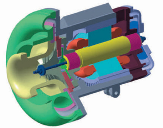 对于以小体积需要获得较大动力的涡轮机械高速 电动马达而言,冷却功能对电动马达的输出和寿命 起到绝大影响。